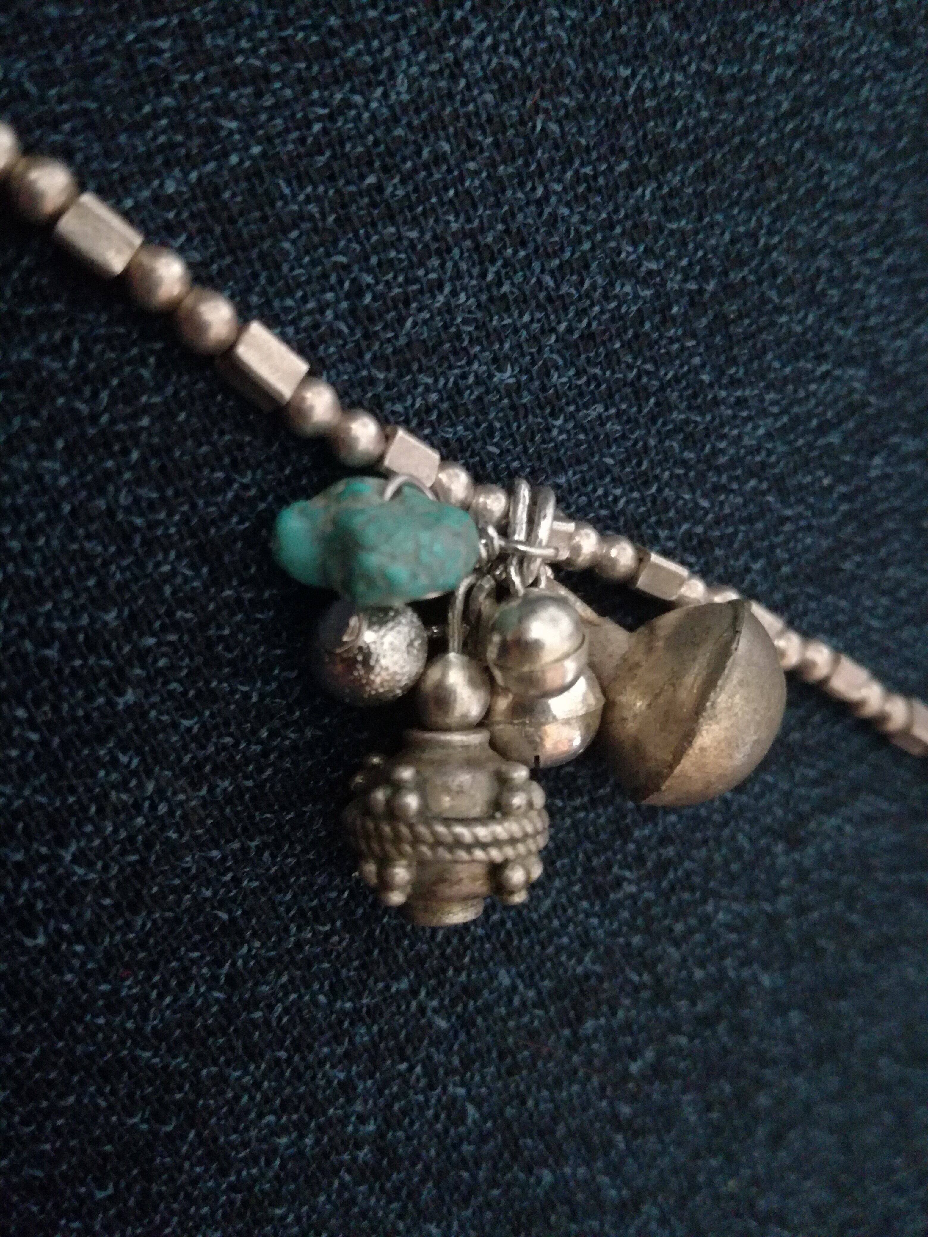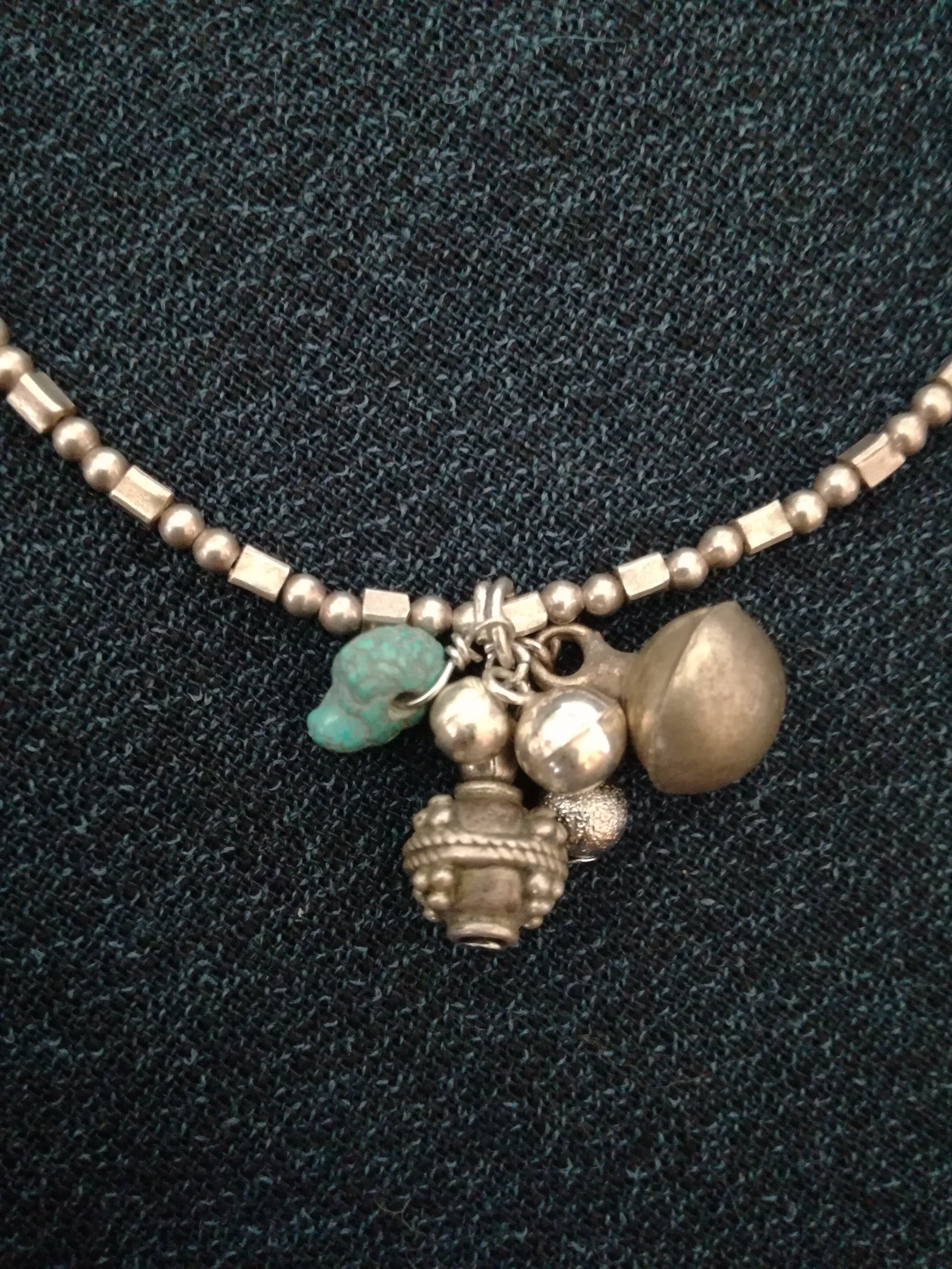 タイの銀製鈴・インドのオールドメタルチャームが素敵な1点ものビンテージジュエリーです。