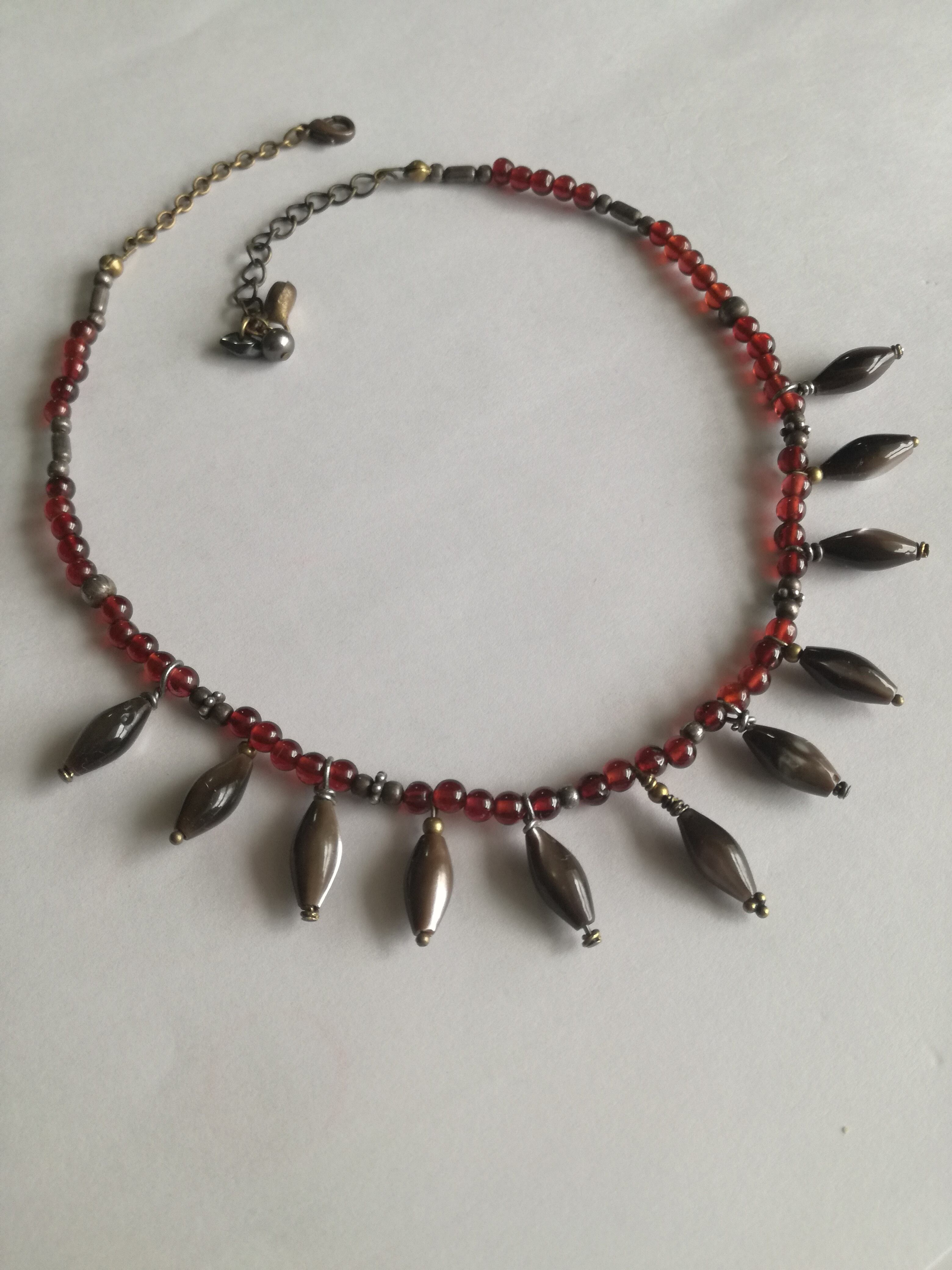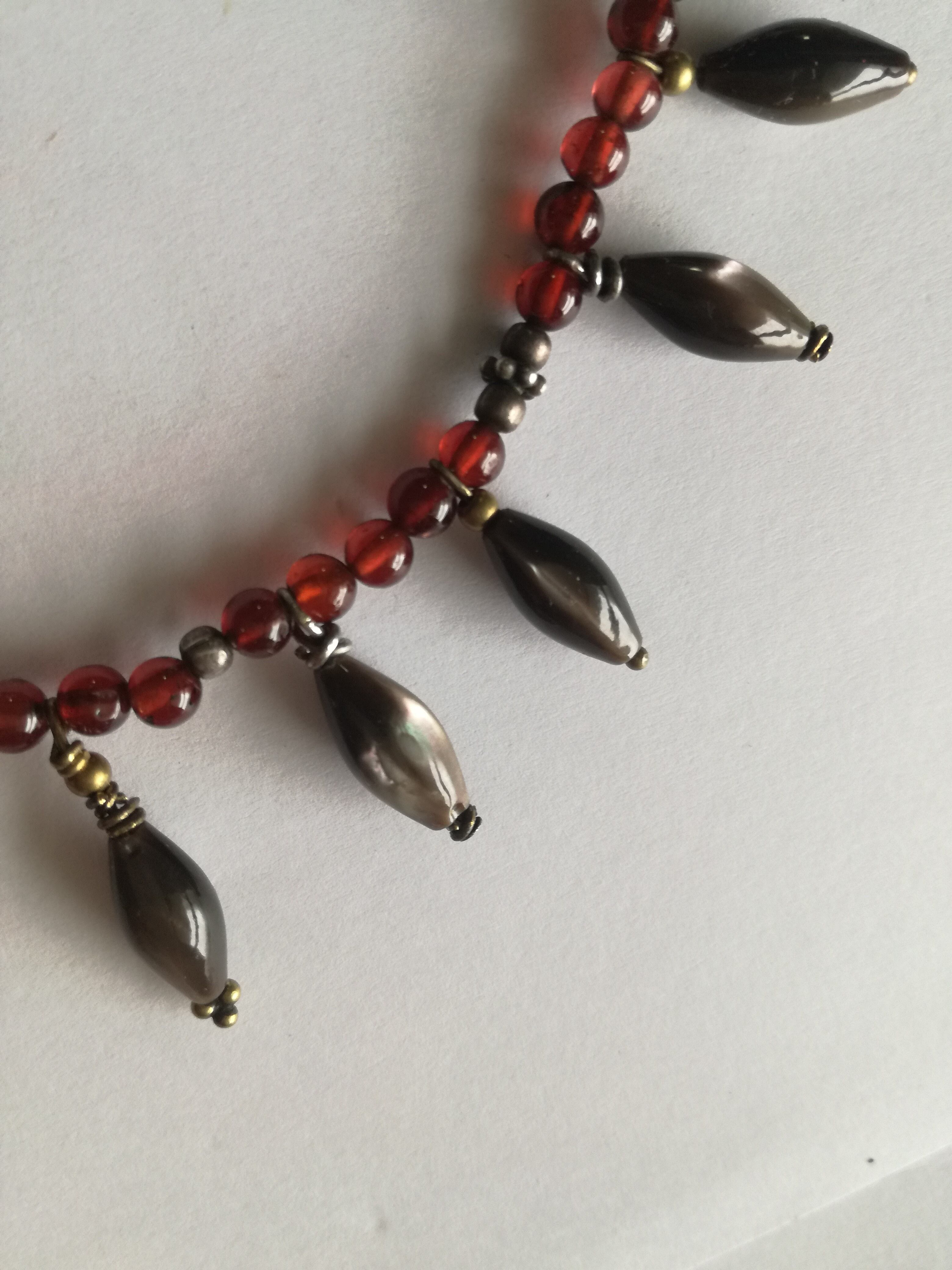 モロッコのサハラ砂漠にて、砂漠の民トゥアレグ族から譲って頂いたガーネットのチョーカーに、シェルの飾りが施されたネックレスです。