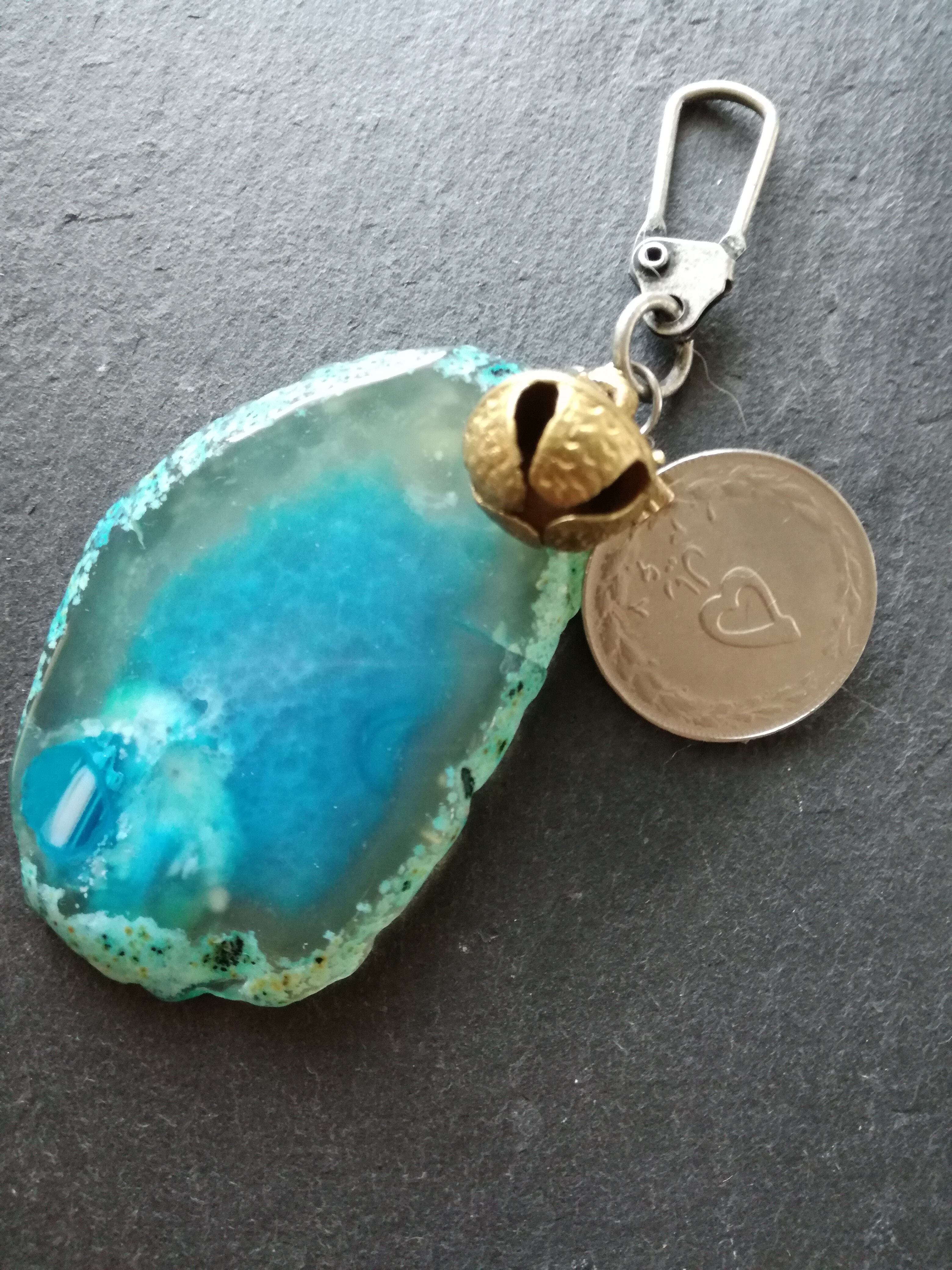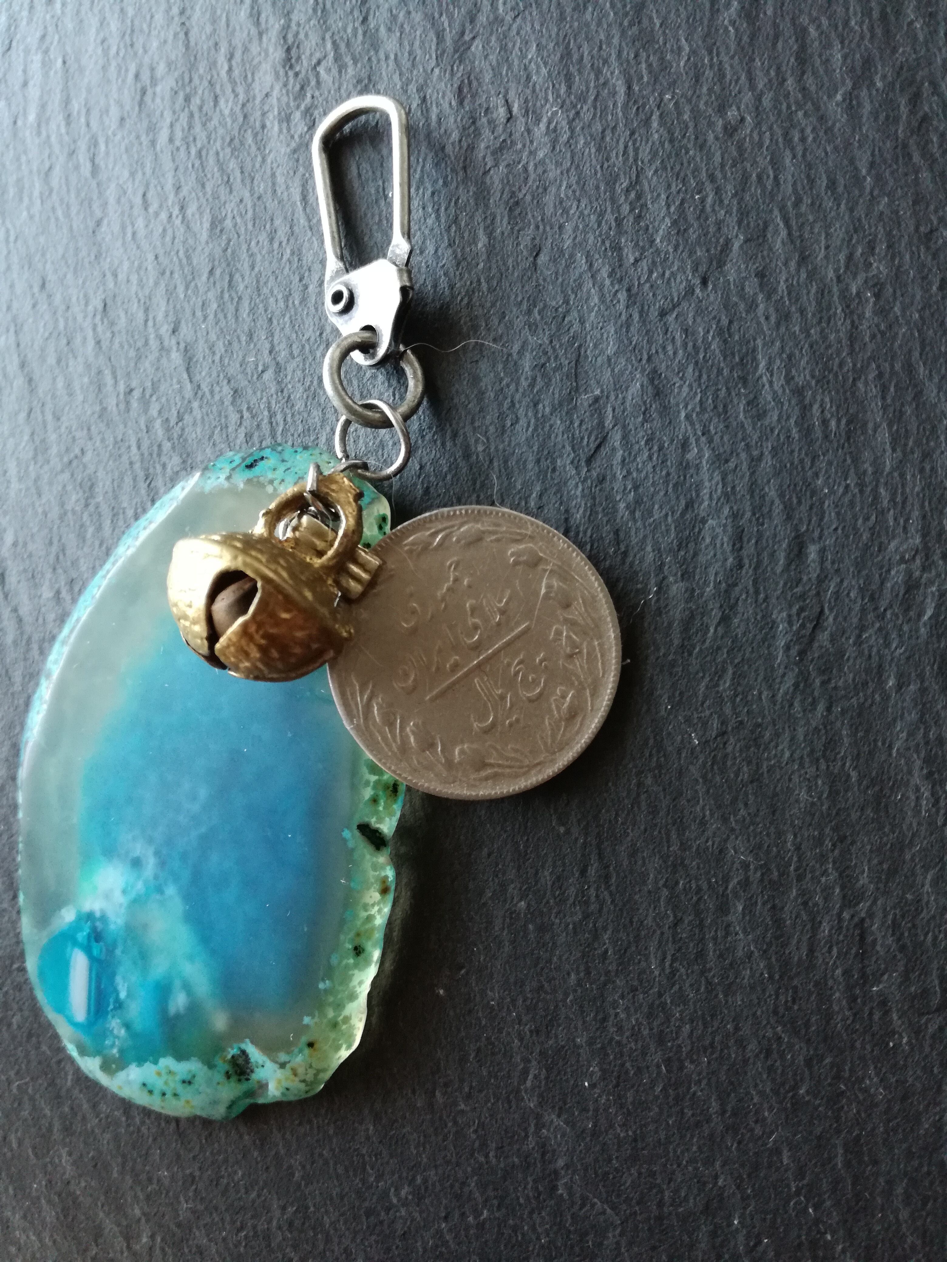 ブルーアゲートとパキスタンのオールドコインのチャームです。
