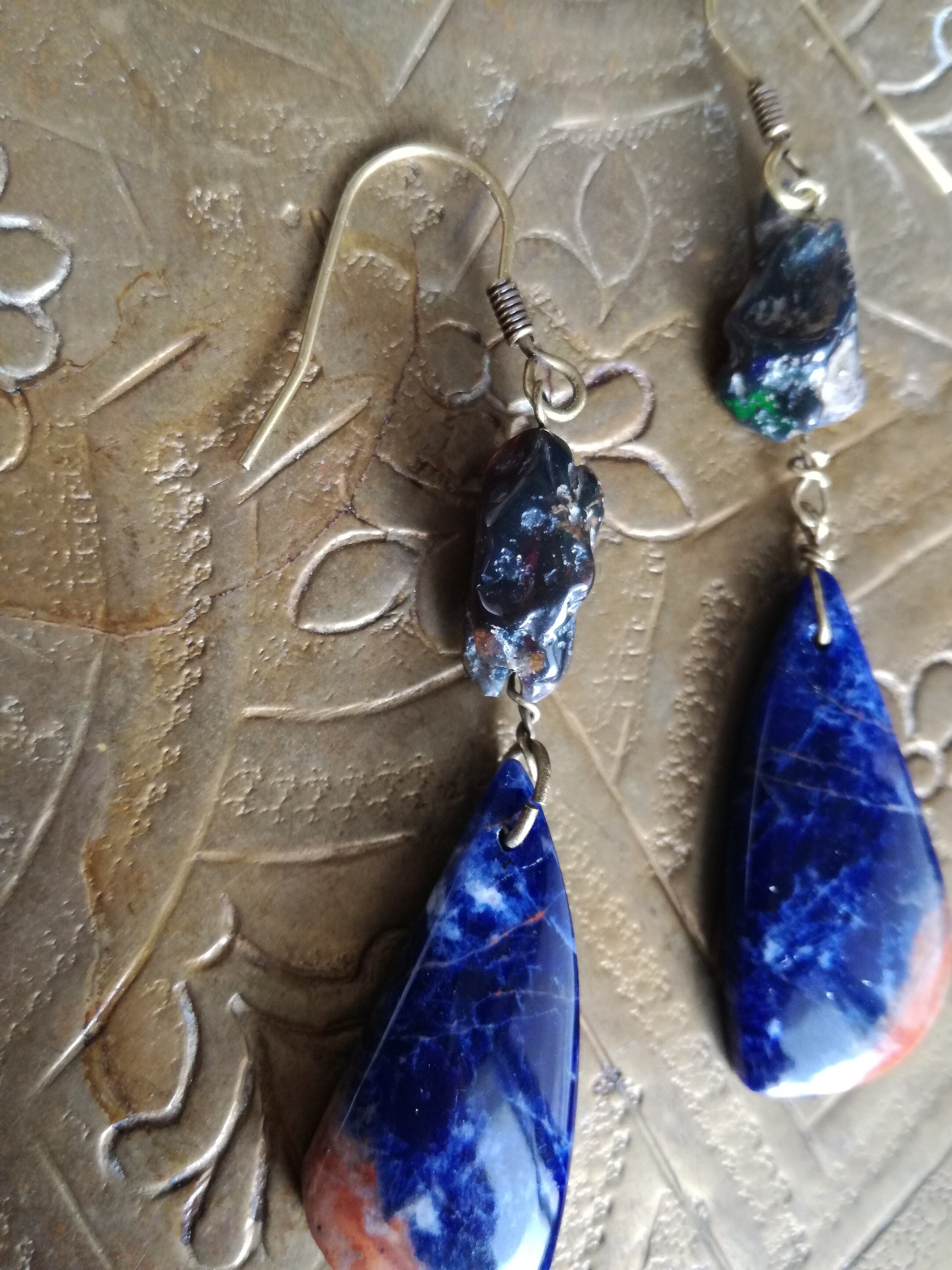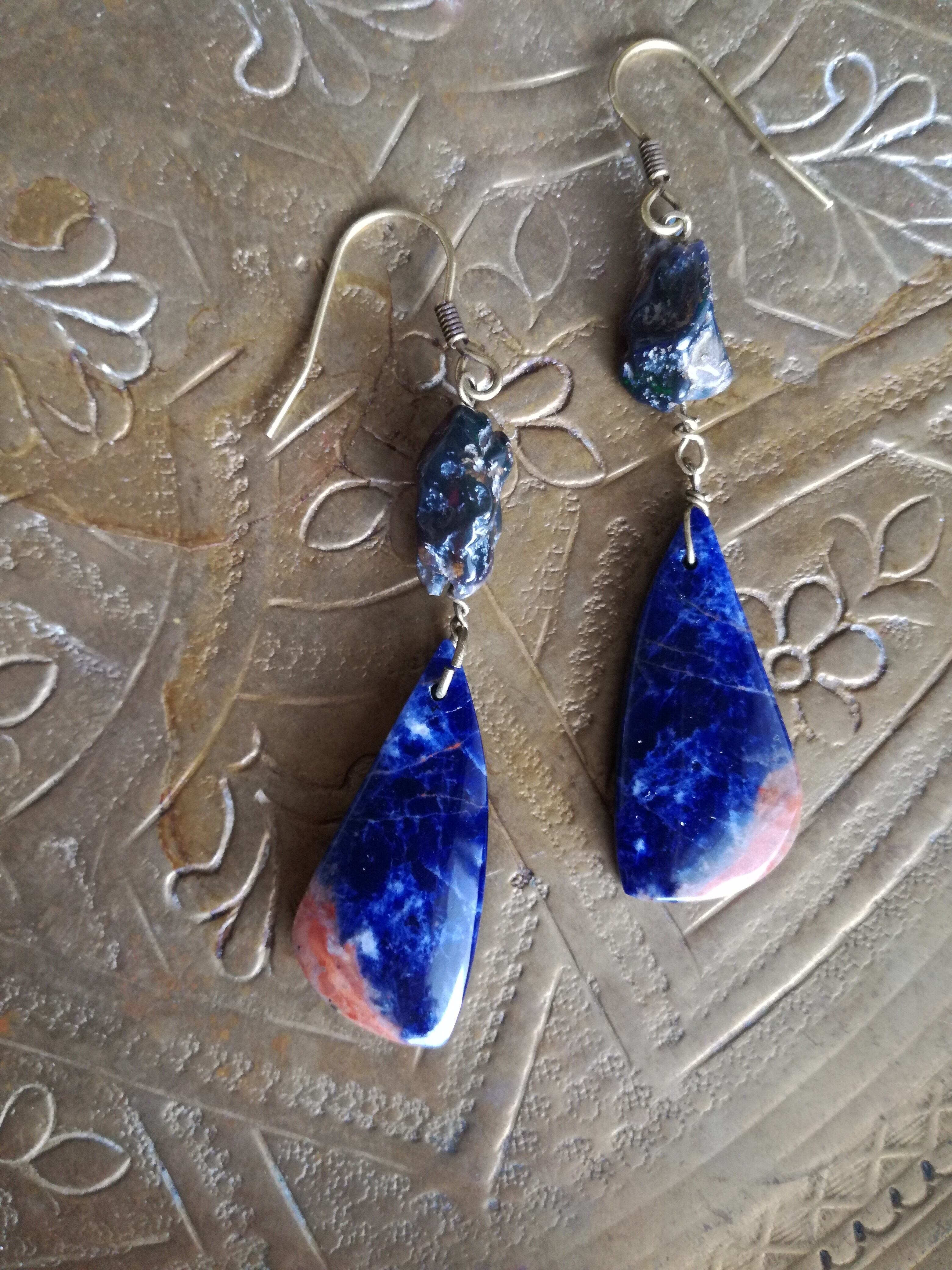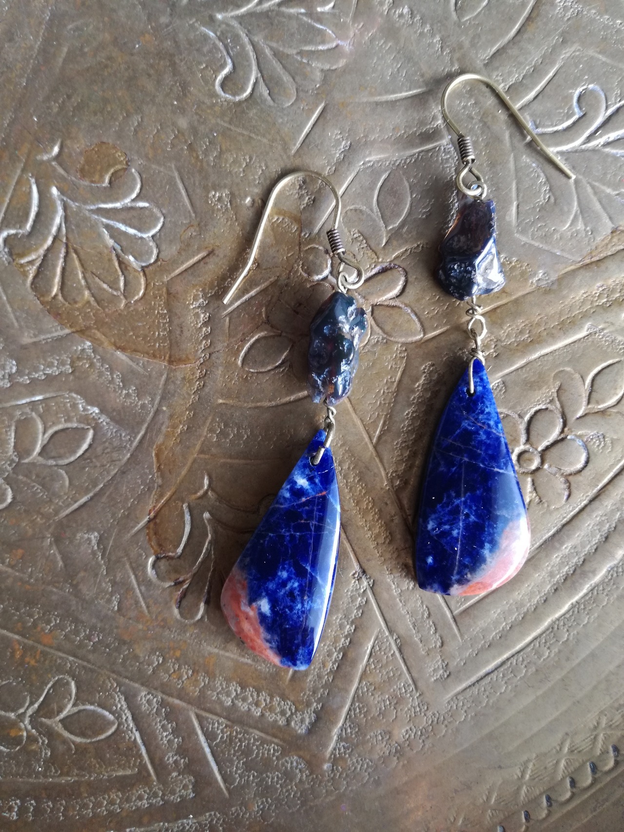 石ごとに独特の表情を持つ青いソーダライトと、渋い色合いと自然体のフォルムが味わい深いエチオピアンオパールがとても素敵です。