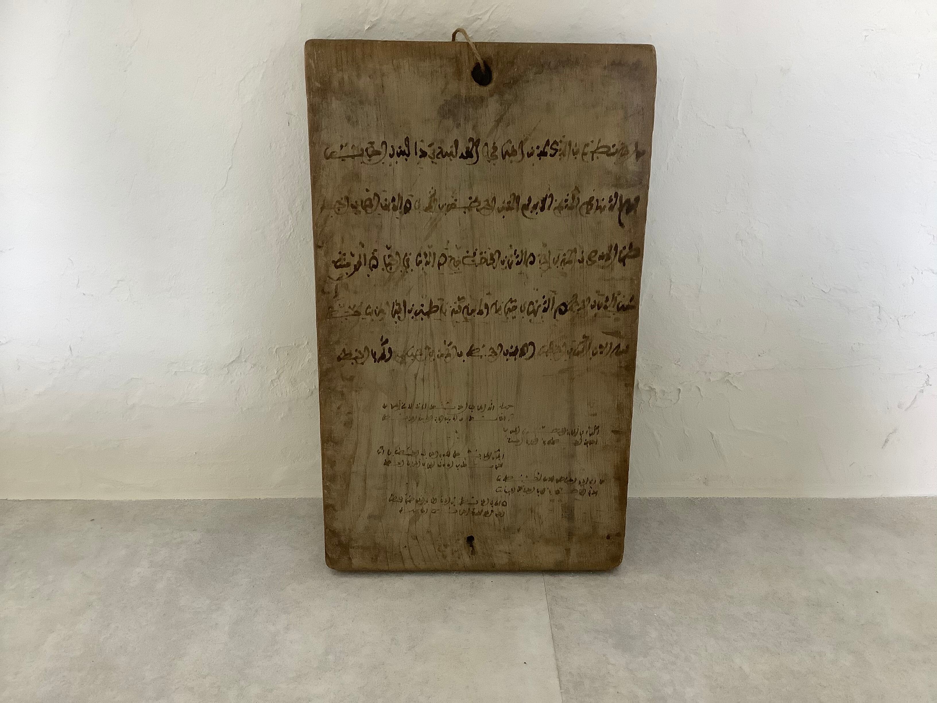 味のある古い木の質感と、アラビア語の醸し出すエキゾチックな雰囲気とても素敵です。